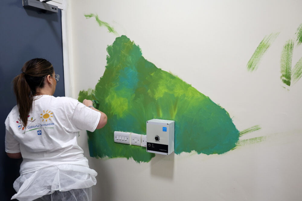 This transformation was made possible by the PPG Colourful Communities initiative. This global programme provides volunteers, products, and funding to revitalize community spaces. We were honoured to be chosen as a site for this project, which brought together PPG employee volunteers to work alongside David G. King, turning a simple building into a vibrant work of art.
